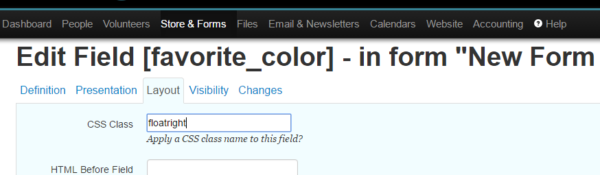Size - The width (# of characters) of your field. This only applies if you are creating a text field (see above). If you want to increase the height, enter the width, then the height separated by a comma. Ex) 20,2